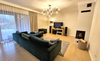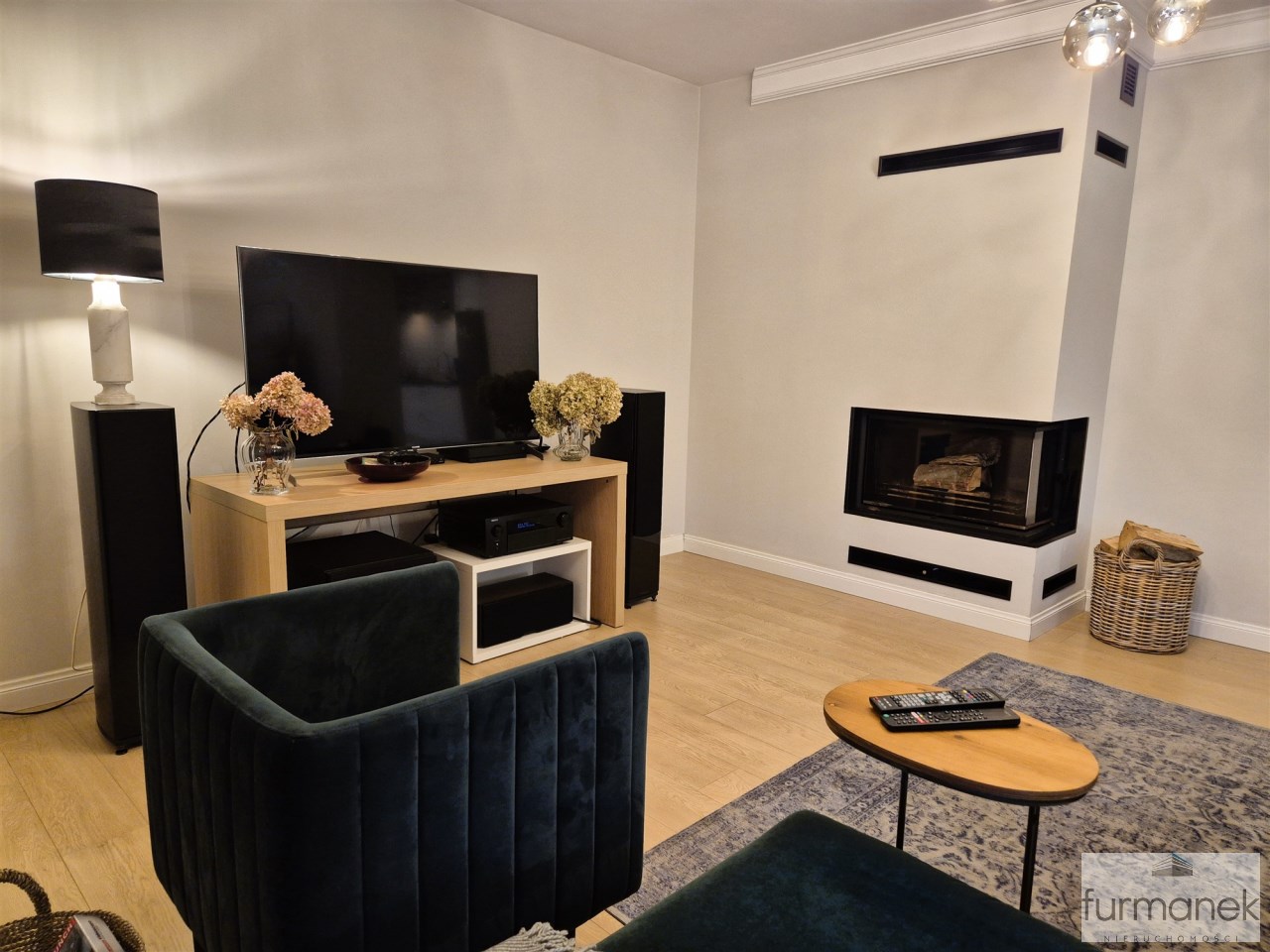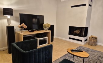 w salonie zamontowany klimatyczny kominek, który w chłodniejsze dni lub zimowe wieczory stanowi doskonałe uzupełnienie tradycyjnego ogrzewania ale także tworzy wyjątkową atmosferę,