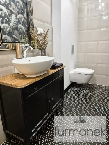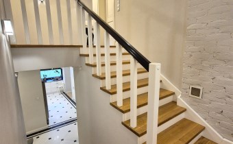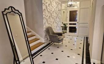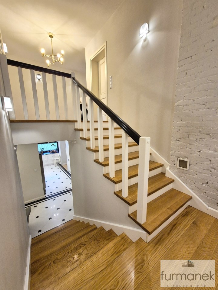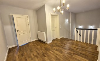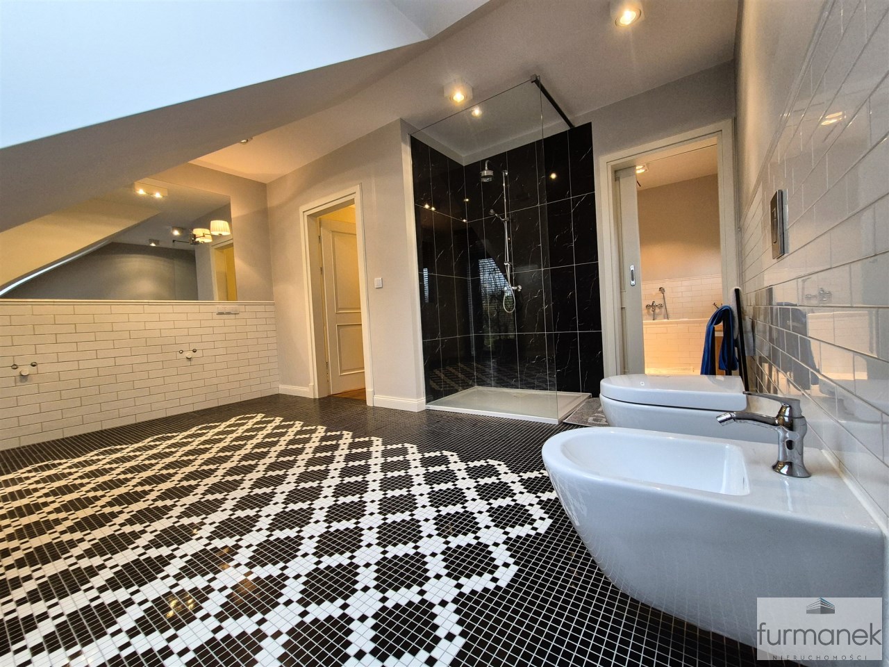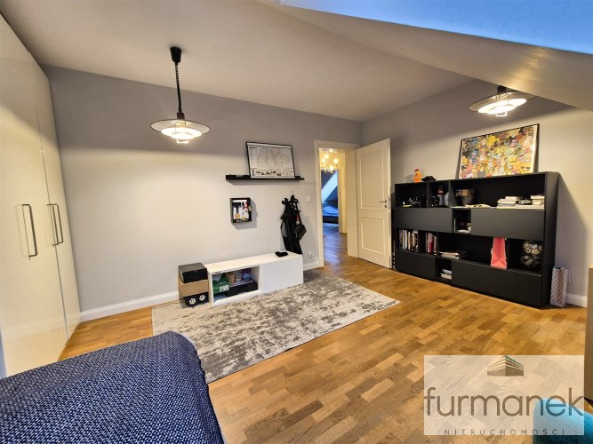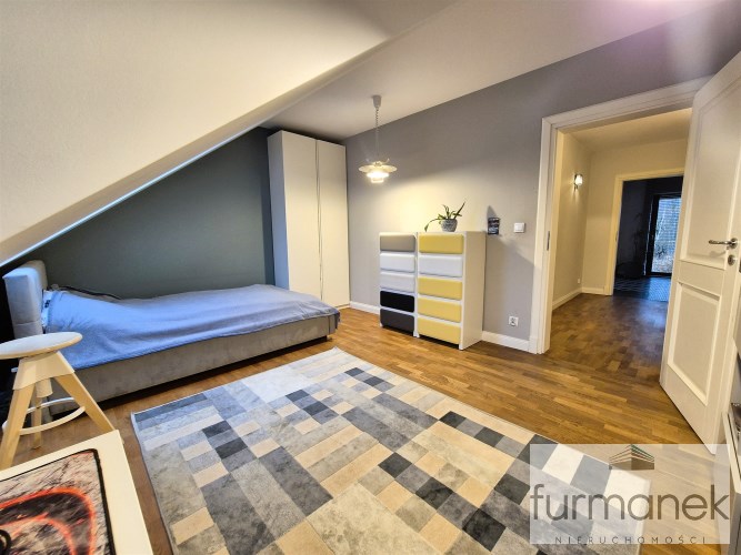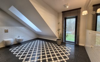 na podłogach: na poddaszu – parkiet dębowy , na parterze wysokiej klasy panele ,