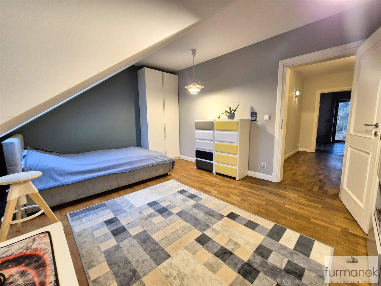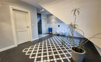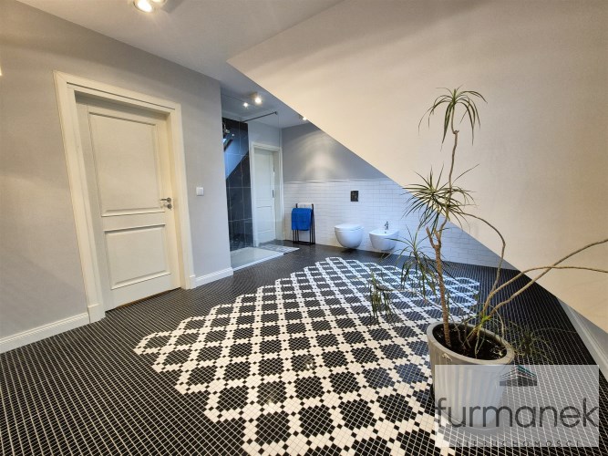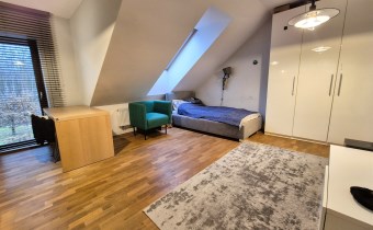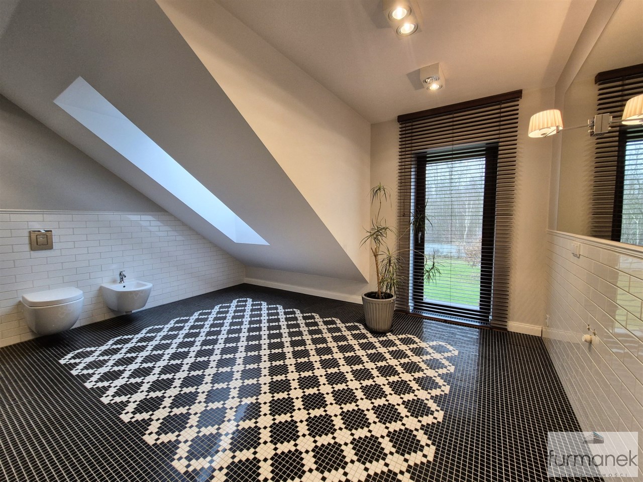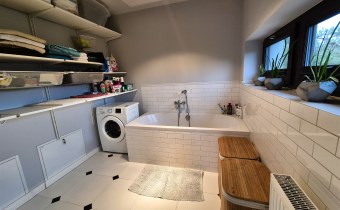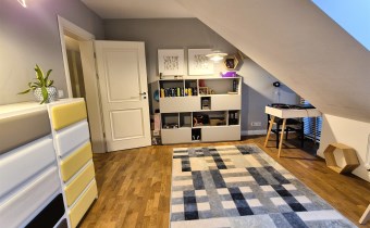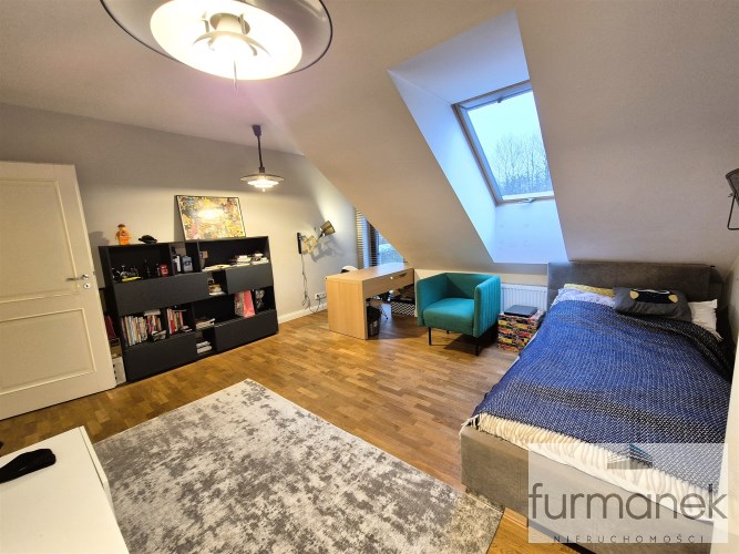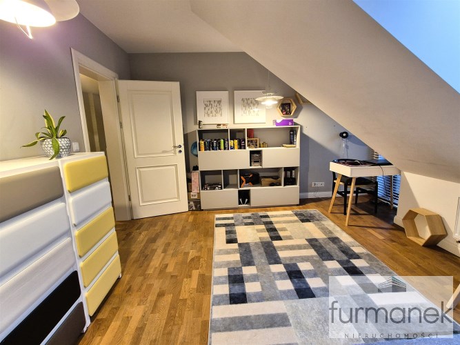 - poddasze: 3 przestronne sypialnie , łazienka z dużymi przeszkleniami, co zapewnia jej naturalne doświetlenie wraz z przyległą pralnią, garderoba,
