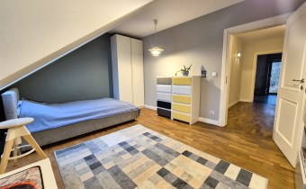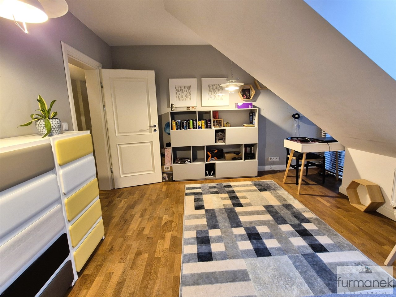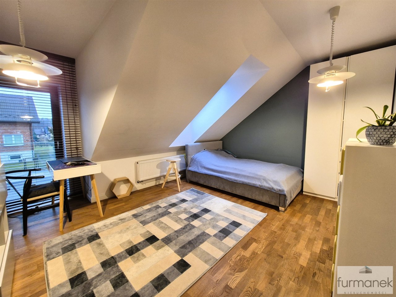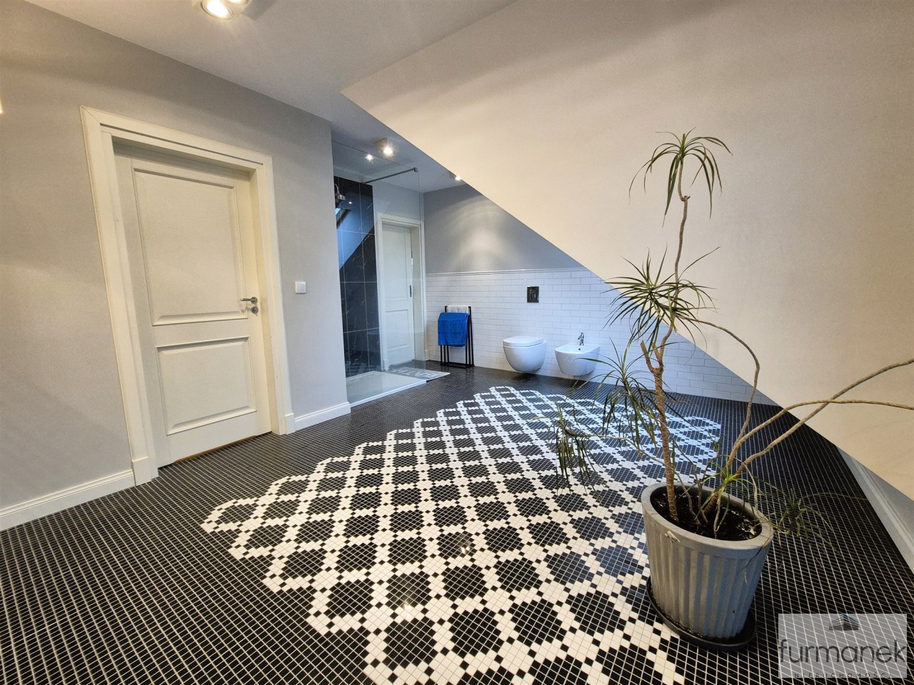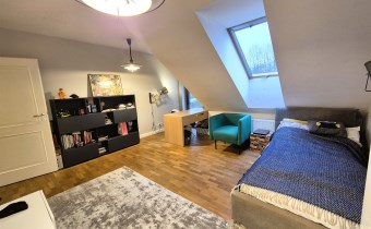 - poddasze: 3 przestronne sypialnie , łazienka z dużymi przeszkleniami, co zapewnia jej naturalne doświetlenie wraz z przyległą pralnią, garderoba,