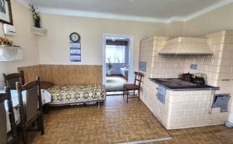 w budynku zamontowany jest kominek z rozprowadzonym ogrzewaniem do wszystkich pomieszczeń, oprócz kuchni, w której zastosowano ogrzewanie z pieca kaflowego,
