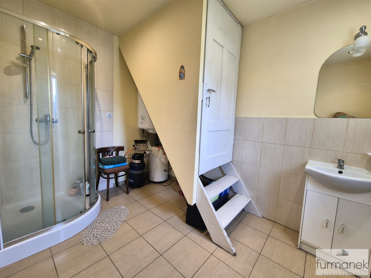 strych, który może pełnić funkcję schowka lub dodatkowej przestrzeni z wejściem z łazienki,