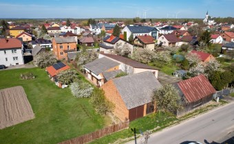 na działce znajdują się także murowane budynki gospodarcze, drewniana szopa oraz stodoła – wszystkie budynki kryte eternitem.