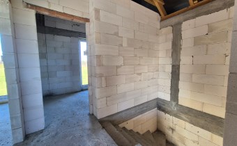 ściany zewnętrzne wykonane z pustaków, docieplone styropianem o grubości 20 cm, wykonana elewacja,