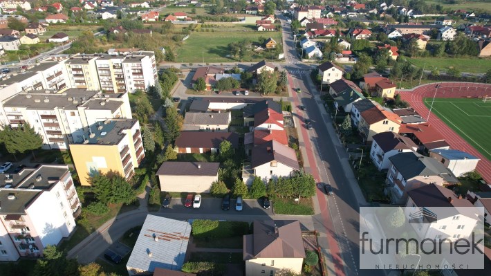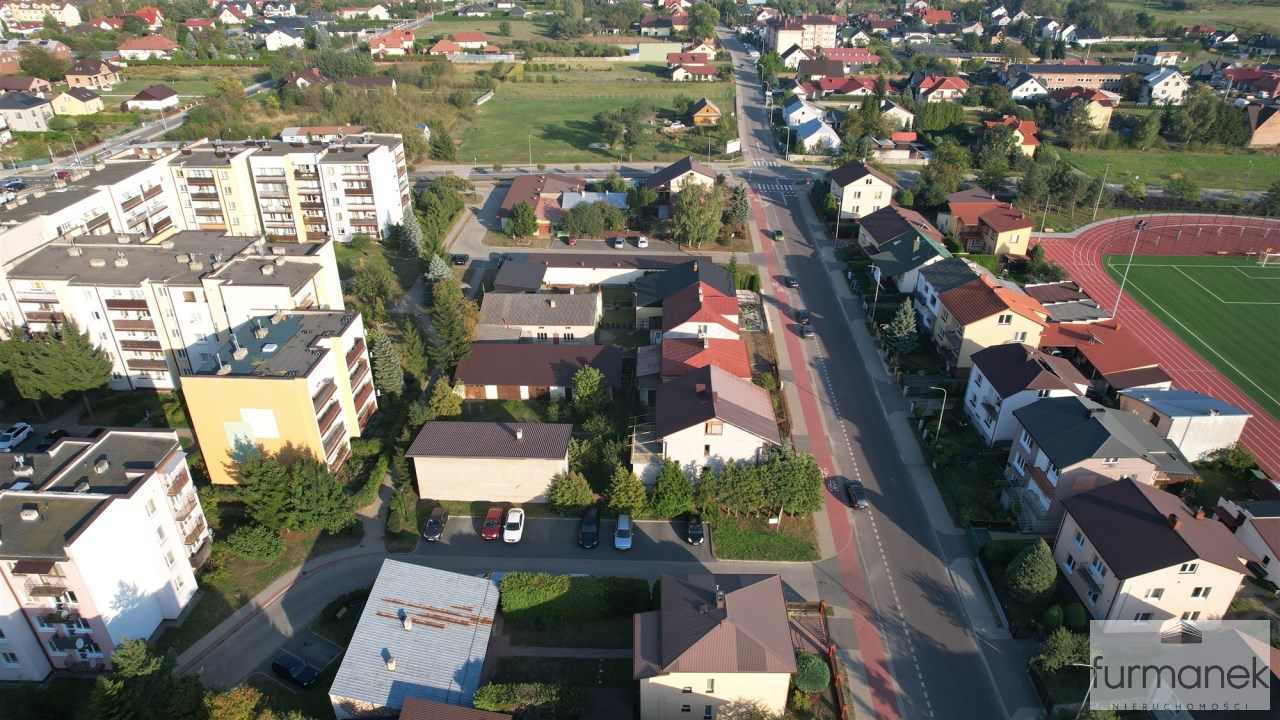 w bliskim sąsiedztwie Liceum Ogólnokształcące, kryta pływalnia, budynki handlowo-usługowe, zabudowa mieszkaniowa jednorodzinna oraz zabudowa mieszkaniowa wielorodzinna,