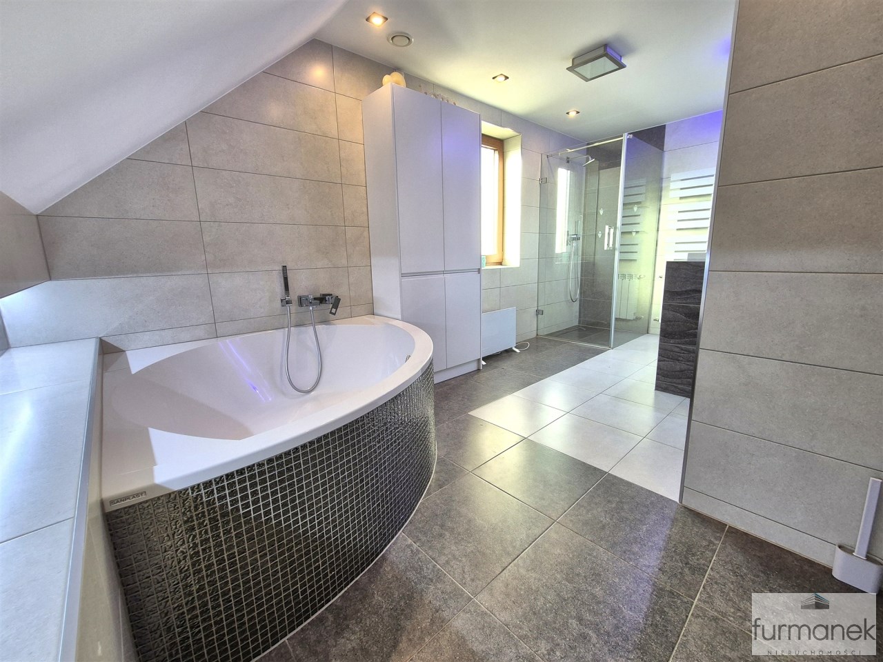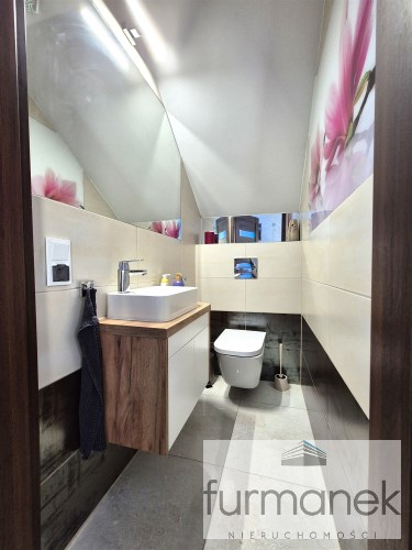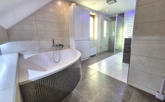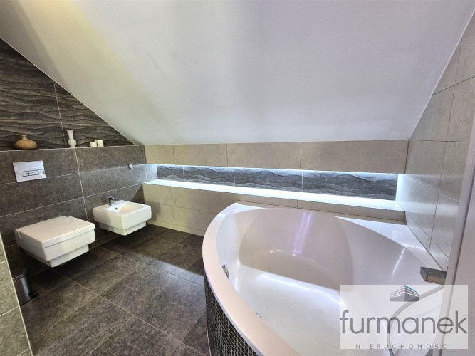 * na poddaszu zaaranżowano 3 sypialnie w tym jedną z garderobą, dużą łazienka z wanną oraz prysznicem, hall,