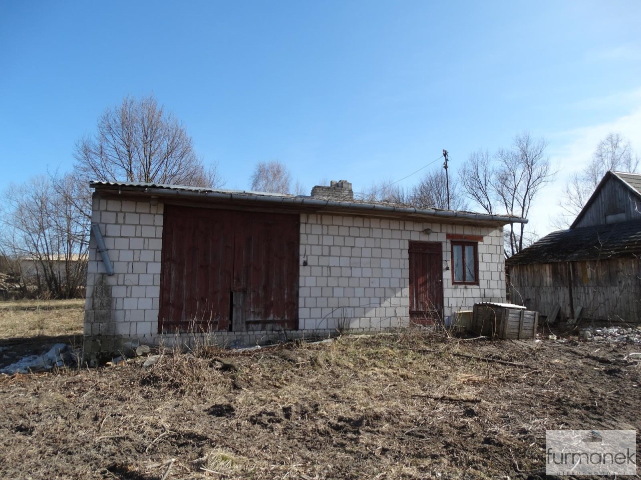 -na działce nr 34/2 znajduje się budynek gospodarczy o pow. około 43 m2 w dobrym stanie oraz drewniany garaż.