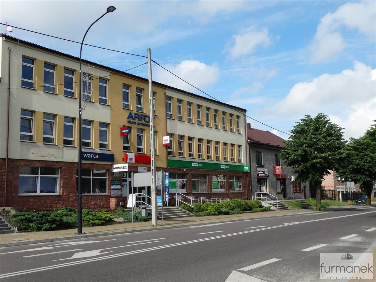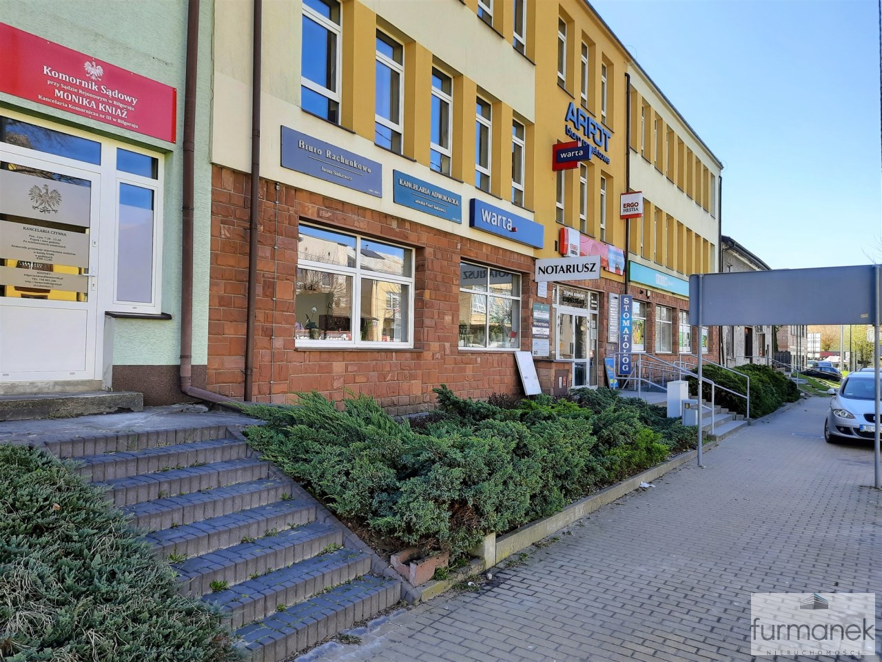 atrakcyjna, widoczna lokalizacja w budynku usługowo-biurowym, w którym znajdują się między innymi: agencje ubezpieczeniowe, kancelarie prawnicze i notarialne, gabinet stomatologiczny, szewc,