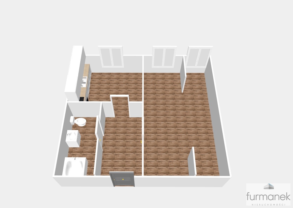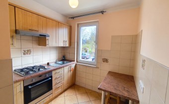 lokal o powierzchni 36,17 m² położony na wyższym parterze budynku, składający się z: przestronnego pokoju z dużą szafą wnękową, kuchni, łazienki z WC oraz niewielkiego przedpokoju,