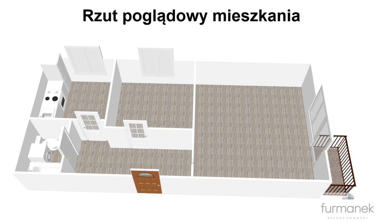 funkcjonalny układ pomieszczeń: przestronny salon z balkonem , kuchnia, sypialnia, łazienka z wanną oraz WC, przedpokój ,