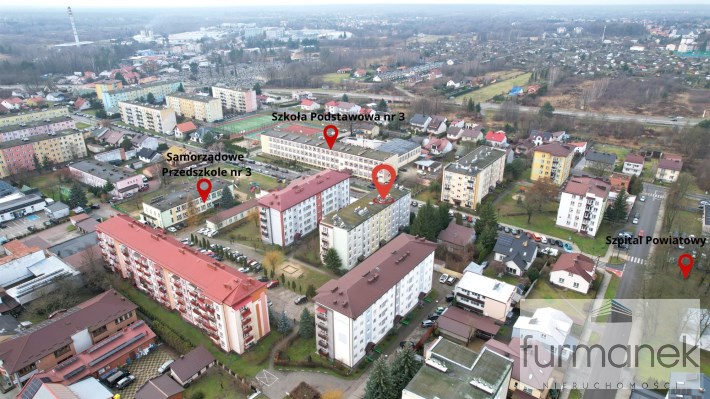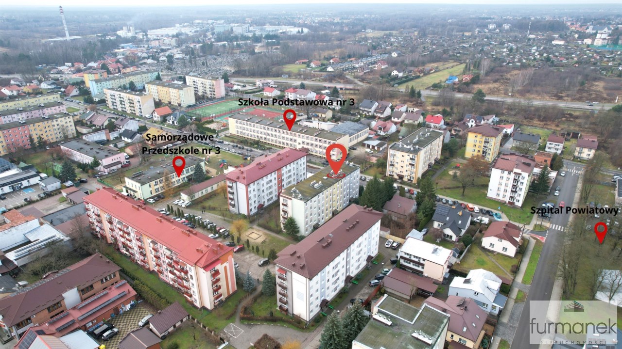 w pobliżu znajdują się liczne punkty handlowo-usługowe, szkoły, przedszkole, gabinet stomatologiczny oraz szpital,