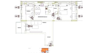 - rozkład pomieszczeń: przedpokój, salon z aneksem kuchennym, 2 pokoje, łazienka z WC,