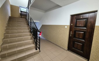 czysta klatka schodowa, domofon, przed budynkiem duży plac zabaw dla dzieci,